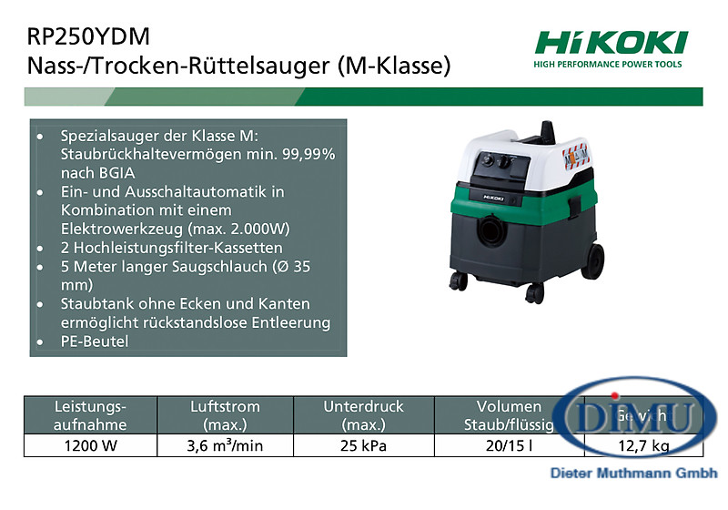 • Spezialsauger der Klasse M: Staubrückhaltevermögen min, 99,99\% nach BGIA